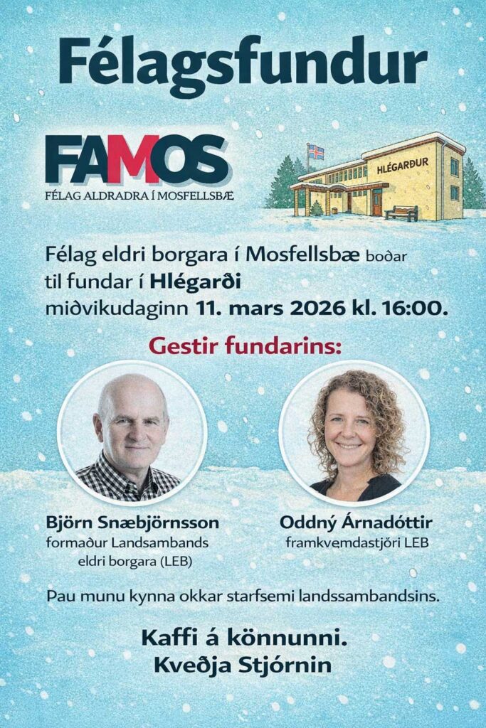 Fræðslufundur í Hlégarði miðvikudaginn 18. feb. 2026klukkan 13:00